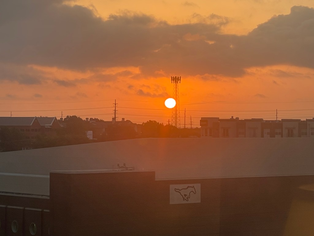 I observed the sunrise from my window, and gave thanks to God for watching over me, for the smooth travel, the large Kroger nearby, the hotel shuttle service without which I wouldn’t have managed to lug back two gallons of water and fruits to sustain me the first few days of settling down.