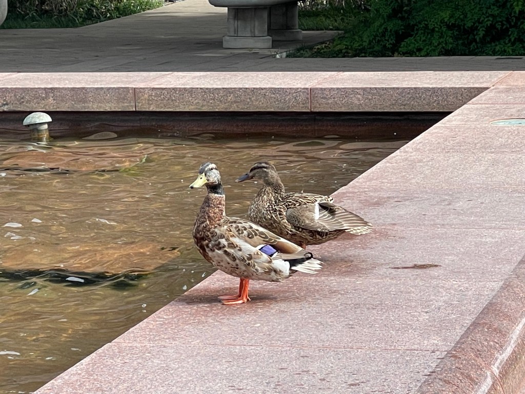At my first stop, I was greeted by a pair of ducks, resting by the water fountain. The next moment, something else caught my eyes, a squirrel scurrying across the front of Blanton Building towards his friend on the other side.